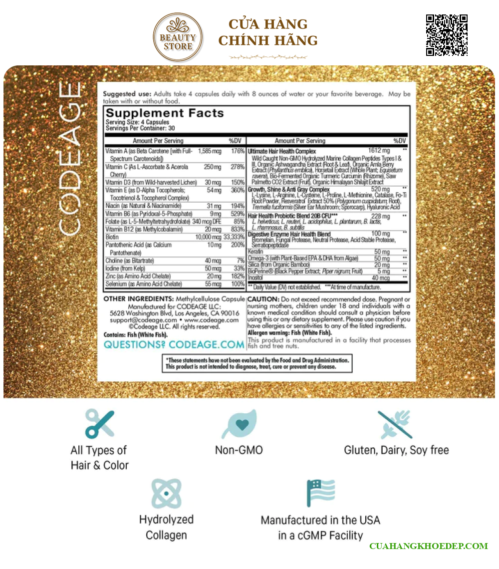 - Bạn có thể tìm mua Viên Uống Mọc Tóc Codeage Hair Vitamins qua website: cuahanglamdep.com